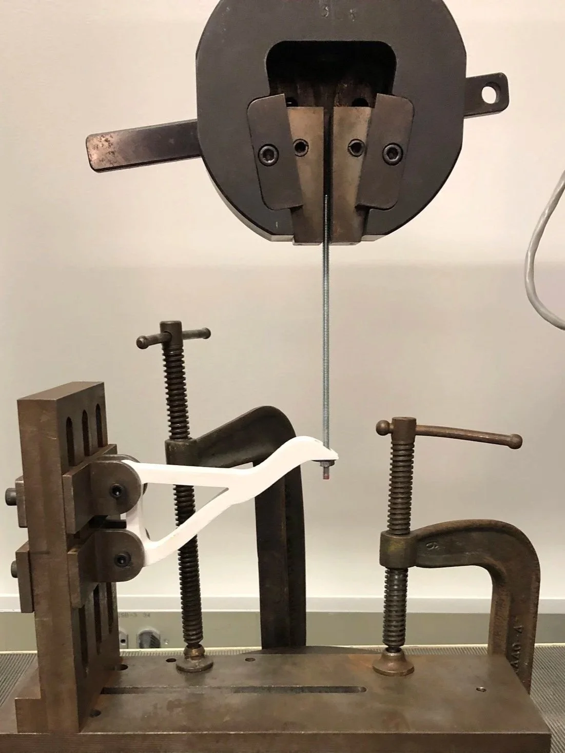 I was empowered to create a shape freely, with the intention of FDM printing a bracket to maintain as much upward deflection as possible. Inspired by the natural curvature of the crane, I attempted two seperate designs, the second of which (pictured left) successfully sustained 22 lbs!