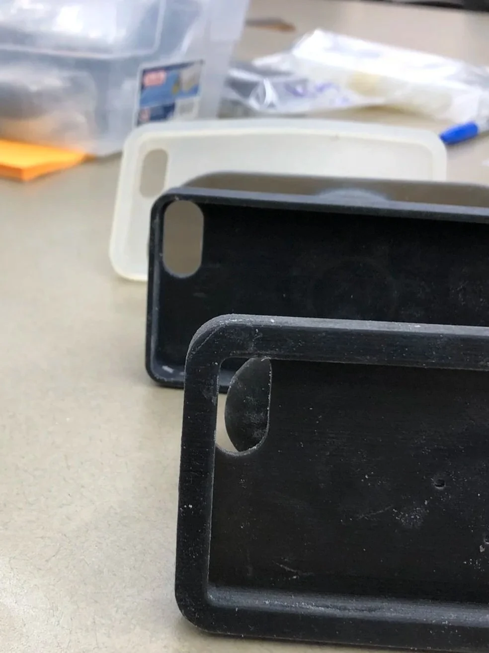 Stereolithography is a fantastic option for creating highly-accurate parts and extreme overhands. For this project, however, SLA’s downfall was due to its capabilities. Since SLA uses one type of resin at a time, the case was too flimsy to protect a phone, or the telescoping stand was too rigid to flex.