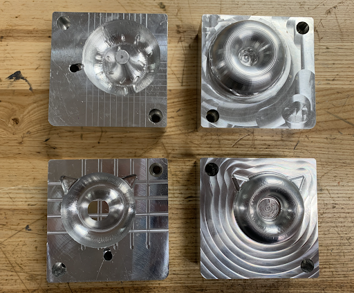 To create the final cat donut, we needed two sets of molds— a cavity and core for both the top and bottom piece.