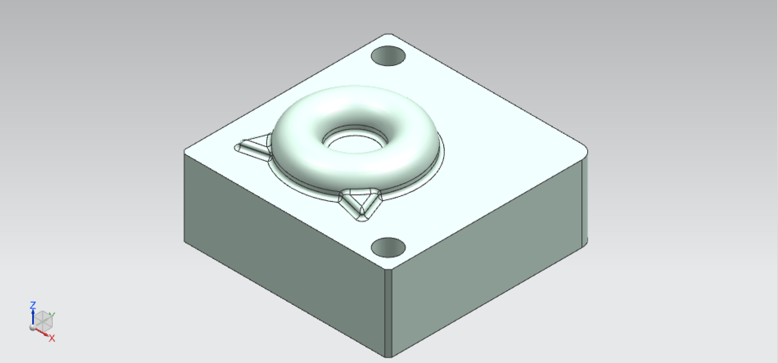 A number of considerations were included in the molds’ designs to ensure manufacturability and ease of machining. The initial design choice centered the half-tori along the z-axis. This orientation minimized deep, curved pockets and removed potential undercuts.