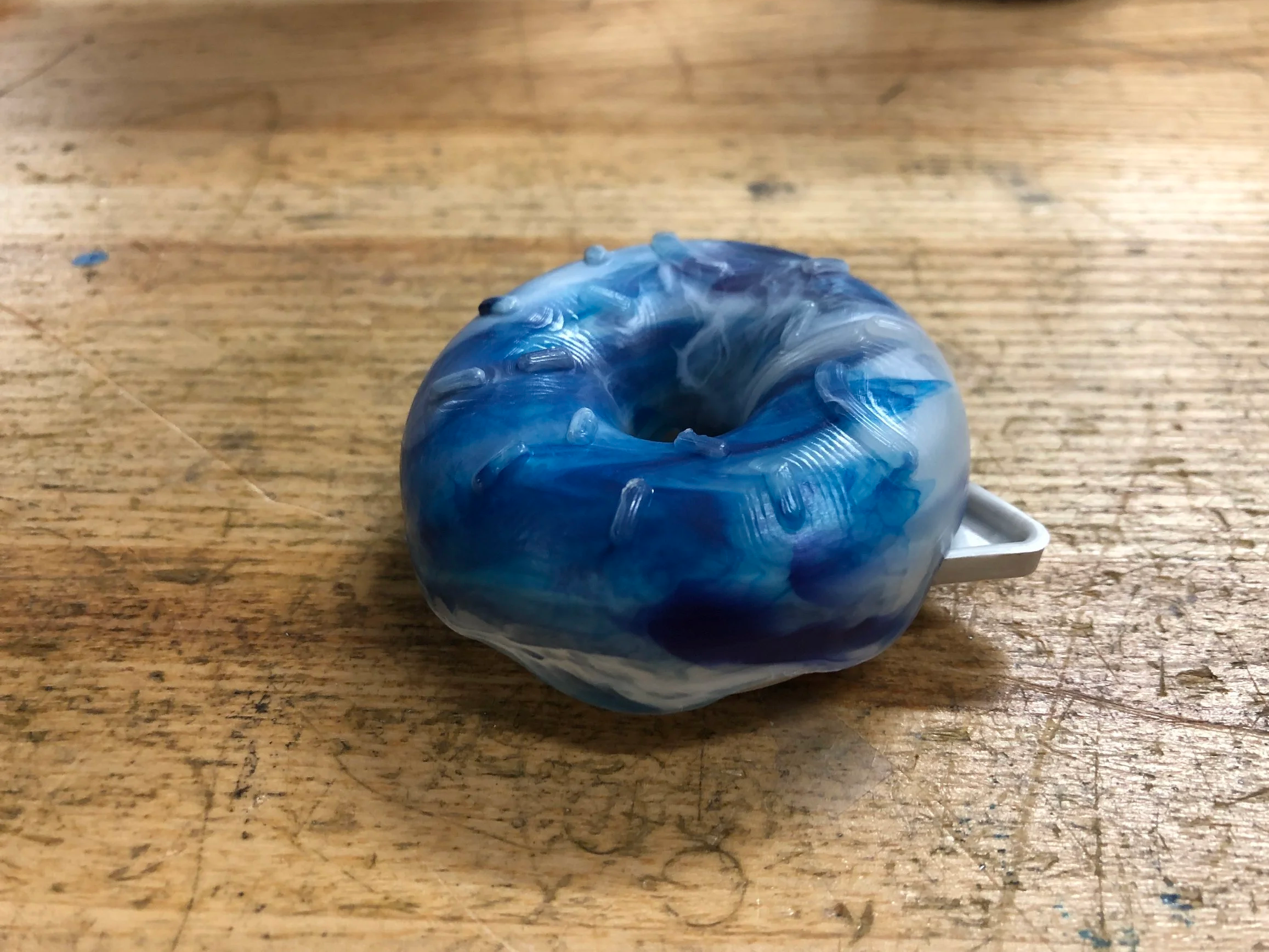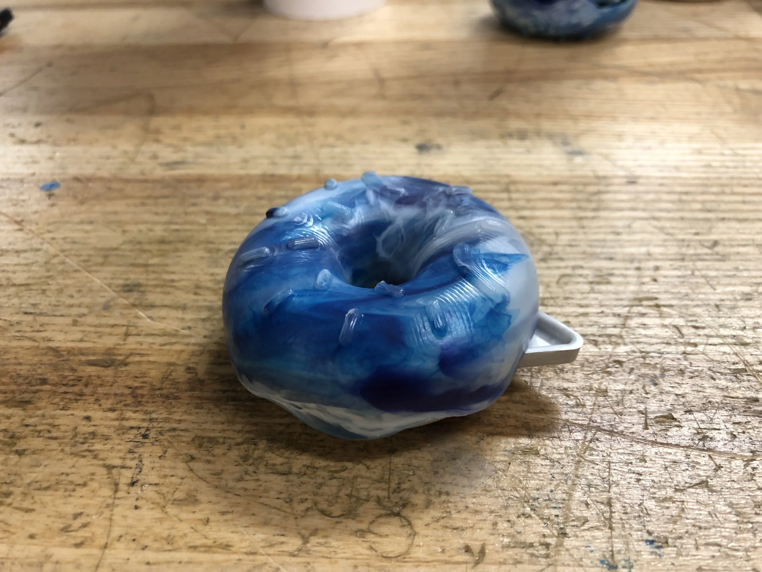 Using injection molding, we fabricated the final Cat Donut using mixed colors to create as close to a rainbow effect as possible.
